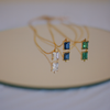 Pure and radiant, this necklace showcases a clear emerald-cut zircon that captures light with every movement. Set on a delicate 18K gold-plated chain, it embodies timeless simplicity—perfect for everyday elegance or refined occasions.