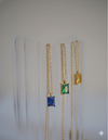 Mysterious and refined, this necklace features a deep sapphire-blue zircon in a sleek emerald cut, glowing like a calm night sky. Paired with an 18K gold-plated chain, it creates a striking contrast and timeless sophistication.