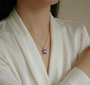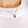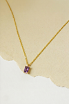 Elegance meets spiritual calm in this enchanting amethyst-hued necklace. Featuring a faceted emerald-cut zircon that glows in rich violet tones, this piece is suspended on a fine 18K gold-plated chain for a look that’s both graceful and grounded.