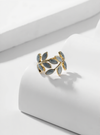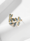 A graceful gold-toned ring adorned with soft blue, leaf-shaped accents, inspired by flowing vines—delicate, feminine, and effortlessly elegant.