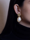 Elegant drop earrings featuring a sculpted gold stud paired with a marbled, stone-inspired pendant framed in gold. A refined statement piece that blends organic texture with timeless sophistication.