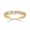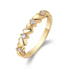 Celebrate love with this exquisite heart-shaped moissanite ring, designed to sparkle with every glance. Crafted from gold-plated metal, this ring features a row of polished, petite hearts, each separated by a brilliant round moissanite stone. The elegant design blends romance with modern sophistication, making it a timeless piece that complements any style.