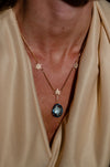 Mysterious and captivating, The Eye of the Ocean Necklace features a radiant ocean-blue stone suspended beneath delicate starburst details, evoking the depth, movement, and magic of the sea. Symbolizing intuition, protection, and inner clarity, this striking design draws the eye with its luminous color and celestial elegance. Crafted with 18K gold plating at 10 millesimal and completely nickel-free, this hypoallergenic necklace is designed for lightweight comfort and all-day wear.